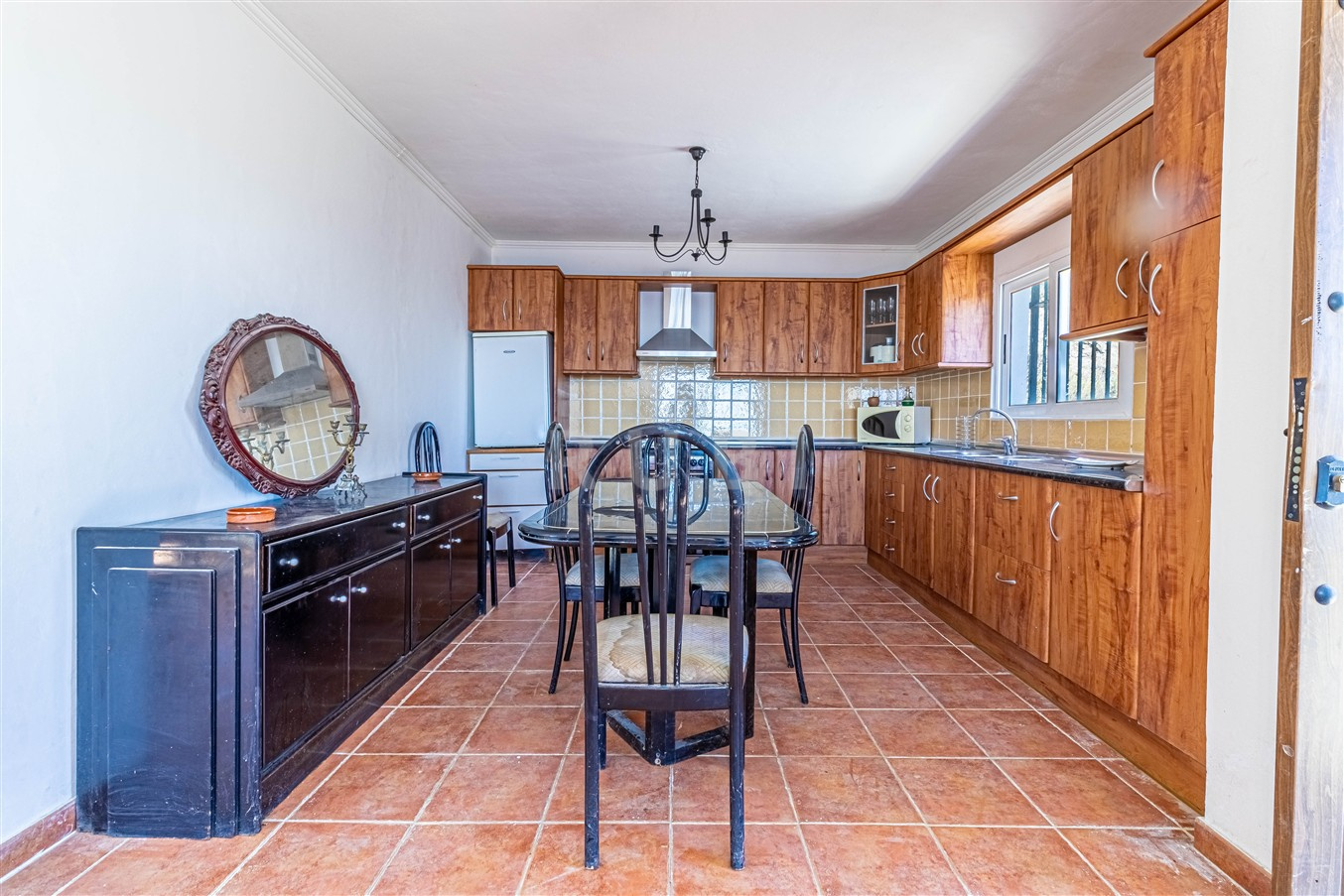 The upper cortijo welcomes you with a warm and inviting living-dining area centered around a cozy fireplace, an open-plan kitchen seamlessly connected to the heart of the home, three bedrooms, and two bathrooms—perfect for family life or hosting guests. The lower cortijo with its spacious living-dining room and grand fireplace, a fully equipped kitchen, three bedrooms including an en suite, and two bathrooms. Both homes are move-in ready, needing at most a touch of fresh paint to make them your own.